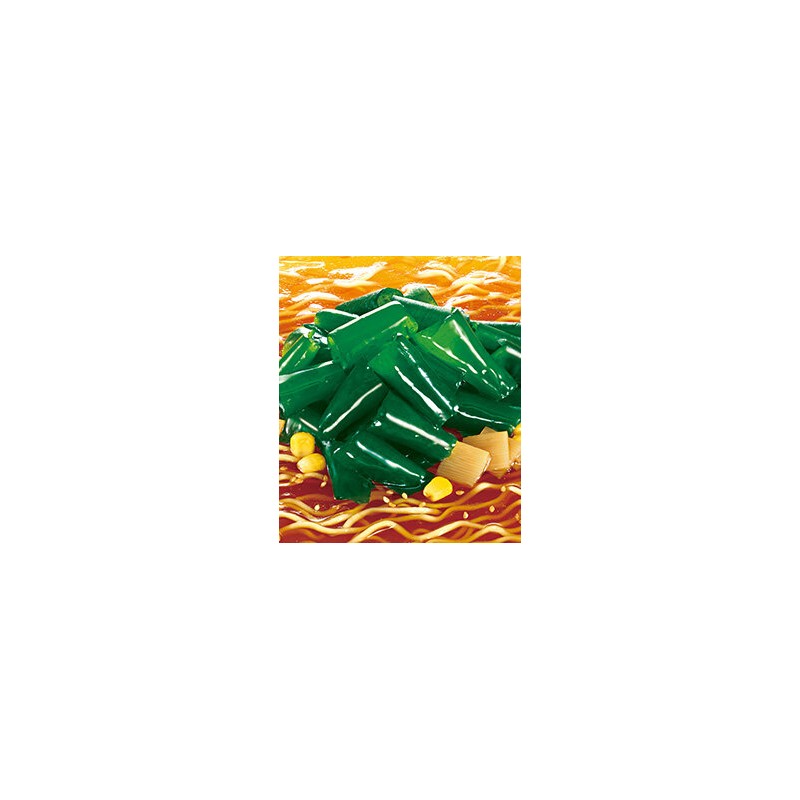 Wykaz składników: smażony makaron (mąka pszenna (pszenica), olej roślinny, sól, sos sojowy(soja)), zupa (sos sojowy (soja), cukier, olej roślinny, sól, sfermentowana przyprawa, hydrolizat białka (soja), ekstrakt z owoców morza, przyprawa, ekstrakt drożdżowy, niestrawna dekstryna), Kayaku (sezam, wakame, kukurydza, pędy bambusa) / skrobia modyfikowana, przyprawy (aminokwasy itp.), alkohol, węglan wapnia, barwniki: karmel, sól, aromat, barwniki: karoten, przeciwutleniacz (witamina E), regulator kwasowości: kwas cytrynowy, ekstrakt z przypraw, witamina B2, witamina B1, (częściowo zawiera pszenicę, składniki mleczne, sezam, soję, kurczaka, wieprzowinę).
