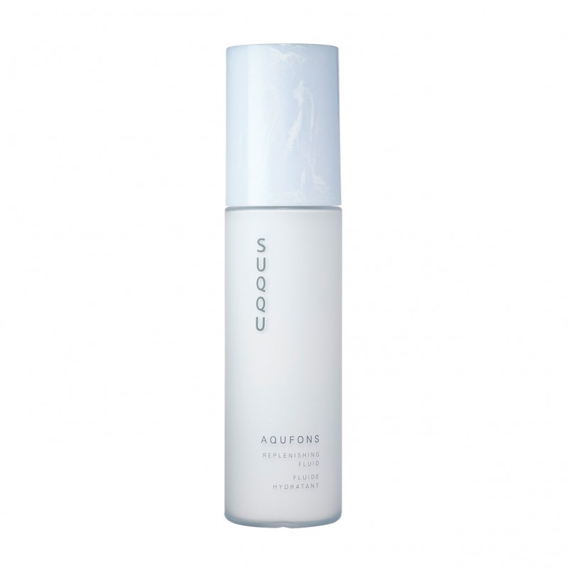 Aqufons Replenishing Fluid wielokrotnie nagradzany przez magazyny MAQUIA, &ROSY, Biteki, sweet, ar (2021) emulsja upiększająca do twarzy japońskiej firmy SUQQU. Ta luksusowa emulsja upiększająca skupia się na tworzeniu eleganckiego blasku skóry. Zapobiega matowieniu spowodowanemu suchością. Zapewnia jędrną, odbijającą światło, nawilżoną skórę. Charakterystyka: