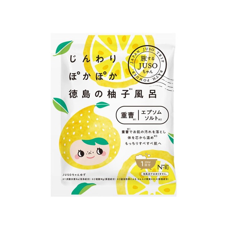 JUSO BATH POWDER YUZU is a warming bath powder with yuzu from GR Inc. NAKUNA-RE. Make your skin smooth with a bath of baking soda! The bath powder formulated with Epsom salt (magnesium sulfate) will help you sweat and warm your body from the inside out. It is beneficial for your skin and overall body condition. It improves your mood even after a really hard day. It contains extracts of yuzu fruit from Tokushima Prefecture, papain, ginger extract, ginseng extract, tea extract. The powder has a pleasant yuzu citrus fragrance. Package: 30g x 10pcs