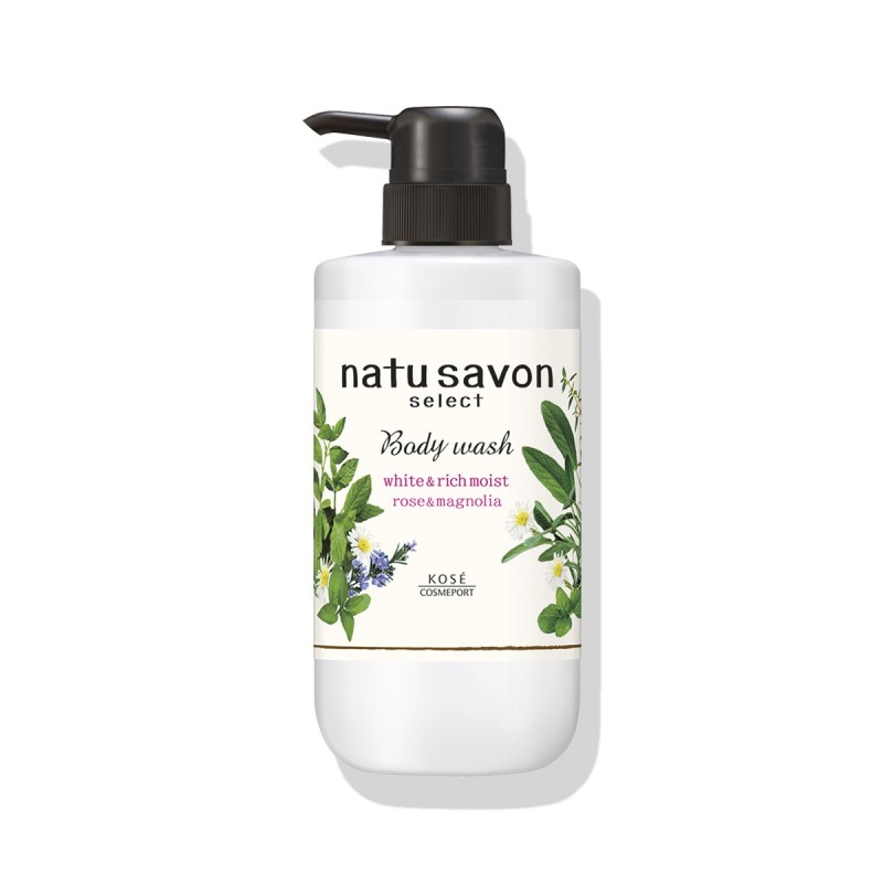 Natu Savon Select Body Wash White & Rich Moist Rose & Magnolia is a botanical shower gel with the scent of rose and magnolia from the Japanese brand Kose Cosmeport. This luxurious, botanical shower gel, made with 85% natural plant ingredients, combines gentle cleansing with intensive care. A thick, creamy lather envelops the skin, thoroughly removing impurities, dead skin cells, and signs of fatigue, while leaving it exceptionally smooth, soft, and radiant. The formula, enriched with shea butter, murumuru butter, olive oil, and almond oil, deeply moisturizes and nourishes, restoring the skin's natural elasticity. The subtle, sophisticated scent of rose and magnolia soothes the senses, transforming your daily bath into a moment of relaxation and pleasure. Capacity: 500ml.