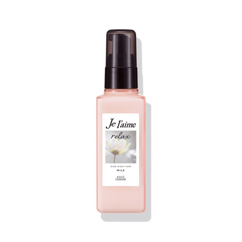 Je l'aime RELAX Over Night Care Milk is a smoothing night milk for frizzy and unruly hair from the Japanese company Kose COSMEPORT. Wake up with perfectly straight, smooth hair - without styling! Je l'aime RELAX Over Night Care Milk is an intensive, non-weighting night treatment for hair with a tendency to wavy, frizzy and dry. Thanks to the light milky formula and advanced technology of capsules with ceramides (Ceramide Capsule GL), the product works during sleep, penetrating deep into the hair fiber and repairing its structure. The milk evenly envelops each strand, smoothing its surface and restoring natural shine. The wealth of care ingredients - argan oil, honey, silk proteins, sunflower oil and vitamin E - intensively moisturizes and regenerates even the most damaged ends.