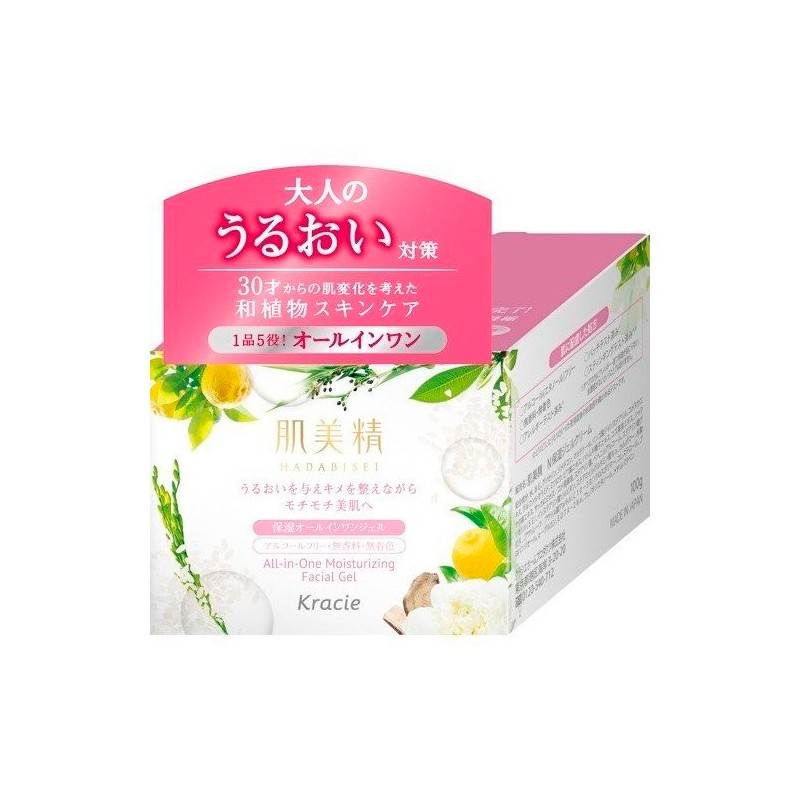 All-in-One Moisturizing Facial Gel is a moisturizing gel - a daily face cream of the Japanese company Kracie Hadabisei. Suitable for day and night. This concentrated multi-purpose gel - moisturizing cream can be used immediately after cleansing your face as a comprehensive skin care treatment. It acts as a lotion, emulsion, cream serum and mask in one. It strongly moisturizes, nourishes and improves skin condition. It maintains its proper hydration and has a softening and smoothing effect. It makes the skin moisturized and smoothed, as well as soft and firm. The unique formula contains, among other things: extract from Eriobotrya japonica, extract coix seeds, yuzu extract (ceramides), peony extract, rice ferment, rice bran extract, rice ceramide (glucosyloceramide). The product does not contain alcohol (ethanol), perfumes, dyes. Allergologically tested. Capacity 100g.