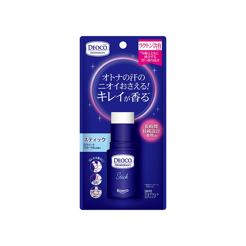 DEOCO Medicated Deodorant Stick is a deodorant stick with antibacterial and odor-neutralizing properties from the Japanese company Rohto. Rohto DEOCO Medicated Deodorant Stick is an effective deodorant stick that helps eliminate unpleasant body odors and provides a long-lasting feeling of freshness. It was developed to combat sweat odor and the so-called "mature skin odor" while maintaining comfort and gentleness on the skin.