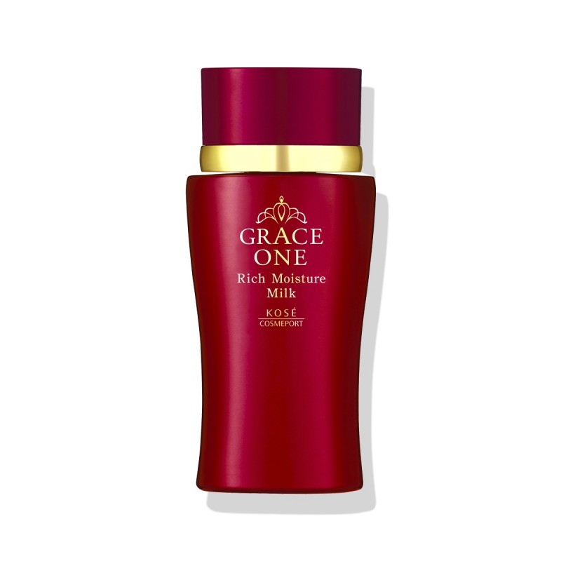 Grace One Rich Moisture Milk is a rejuvenating, anti-ageing, rich, astaxanthin-enriched face lotion for mature skin of 50+ Japanese company Kose. The rich formula, based on a unique combination of ingredients, inhibits the processes leading to skin sagging and wrinkles and reduces the existing signs of aging. It activates cell regeneration and renewal processes, reduces, smoothes lines and wrinkles, improves firmness and elasticity, intensively moisturizes, eliminates stains, discolorations, adds energy and restores a healthy look to the skin. It contains 3 types of collagen, 3 types of hyaluronic acid, fermented soya milk, astaxanthin, garnet extract, rose extract. Astaxanthin is the strongest natural antioxidant, inhibits the aging process and accelerates the renewal of the epidermis, reduces melanin discoloration, is a natural sunscreen. The milk effectively delays the aging process. The skin regains its proper elasticity, vitality and radiant, visibly younger look. It has a delicate rose scent. Capacity: 130ml.