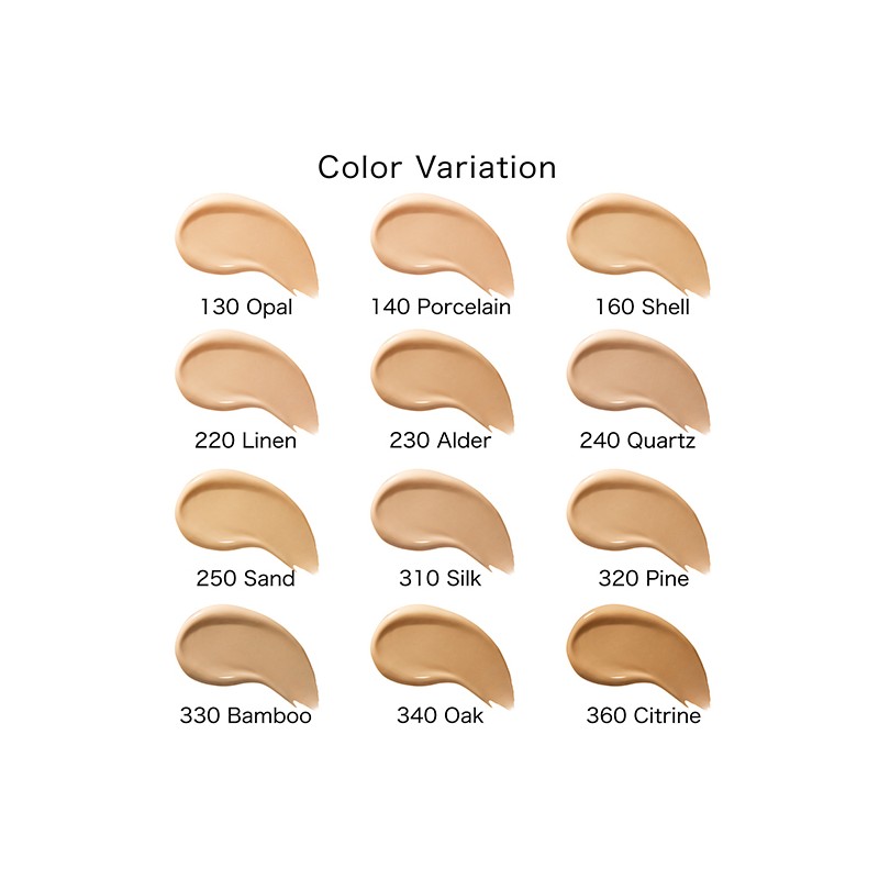 Water, Titanium Dioxide, Dimethicone, Diphenylsiloxy Phenyl Trimethicone, Ethylhexyl Methoxycinnamate, Butylene Glycol, Glycerin, Trimethylsiloxysilicate, Hydrogenated Polydecene, PEG-10 Dimethicone, Bis-Butyldimethicone Polyglyceryl-3, (Dimethicone/(PEG-10/15)) Crosspolymer, Isostearic Acid, Sorbitan Sesquiisostearate, Erythritol, Argania Spinosa Kernel Oil, Tocopheryl Acetate, Polyquaternium-51, Lavender Oil, Citrus Unshiu Peel Extract, Wild Thyme Extract, Fagus Sylvatica Bud Extract, Averrhoa Carambola Leaf Extract, Hydrolyzed Conchiolin Protein, Disteardimonium Hectorite, Aluminum Hydroxide, Disodium EDTA, Magnesium Stearate, Stearic Acid, Calcium Aluminum Borosilicate, Dipropylene Glycol, Tocopherol, BHT, Silica, Alumina, Phenoxyethanol, Iron Oxides, Barium Sulfate, Mica.