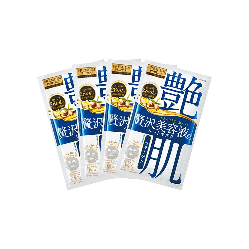 Japanese masks with collagen and vegetable oils. Masks suitable for mature skin with signs of ageing, wrinkles and loss of firmness. These luxurious beauty masks contain the ideal combination of moisturizing ingredients, collagen and cosmetic oils. The masks perfectly firm and deeply moisturize the skin. Package: 4pcs.