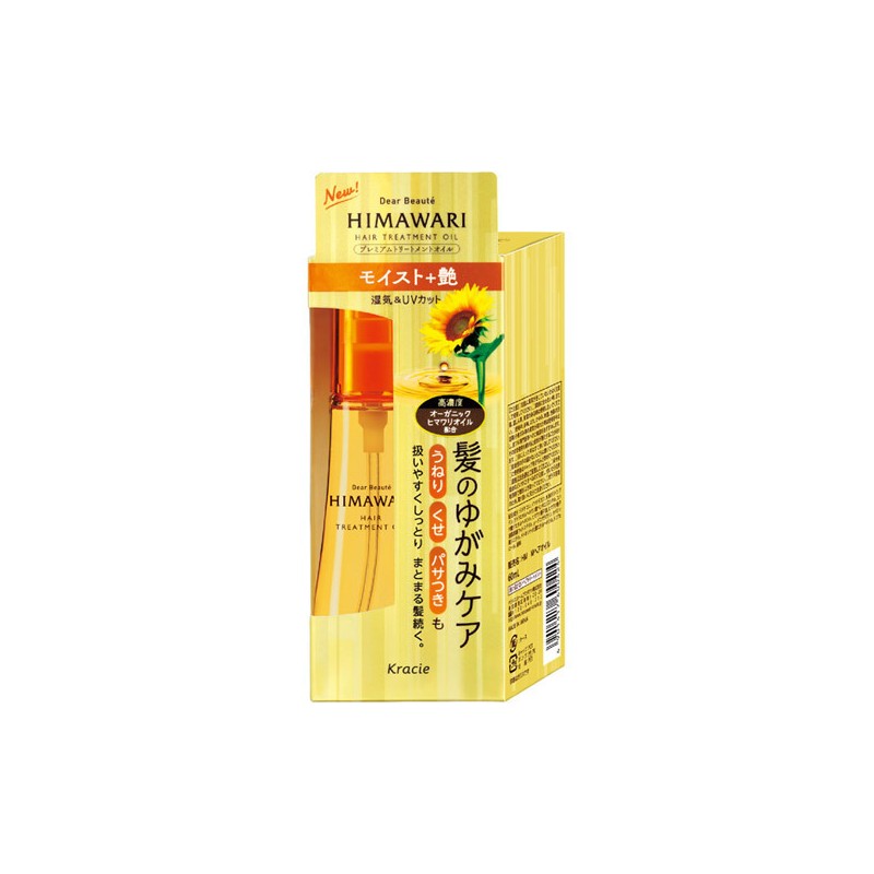 Dear Beaute Himawari Hair Treatment Oil Moist is a moisturizing hair oil from Japanese company Kracie. This moisturizing oil corrects hair distortions (frizz, curls and dryness) and leads to straight, smooth hair. It uses a triple care system. It contains highly concentrated organic sunflower oil + conditioning and swelling control ingredients (lipid and moisture retention + repairing ingredients) + sunflower lipids (shine enhancement + moisturizing enveloping ingredients). It penetrates from the surface and inside the hair, repairs damage, adds shine and moisture. Dear Beaute Himawari Hair Treatment Oil Moist rich oil quickly absorbs moisture and keeps hair manageable and combable all day long with its highly permeable Moist Plus formula.