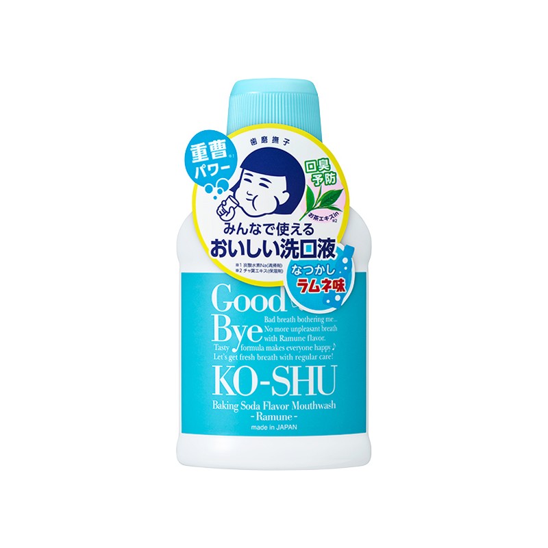 Good Bye Ko-Shu Baking Soda Flavor Mouthwash Ramune is a mouthwash with the flavor of Japanese ramune lemonade by Ishizawa. Ishizawa Lab Good Bye Ko-Shu Baking Soda Ramune Mouthwash 200 ml is a refreshing mouthwash with a delicate ramune (“Japanese soda”) flavor that combines effective odor removal with a pleasant, light formula.