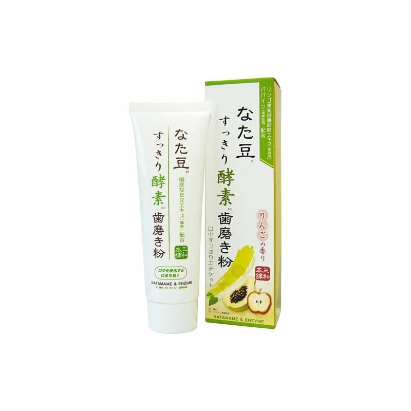 Natamame Refreshing Enzyme Toothpaste is an enzymatic toothpaste with natto beans and apple aroma from Sanwatsusyo. Take care of fresh breath and natural whiteness of teeth with Sanwatsusyo Natamame Refreshing Enzyme Toothpaste - a unique paste that combines the cleansing power of sword beans (natto) with the action of plant enzymes.