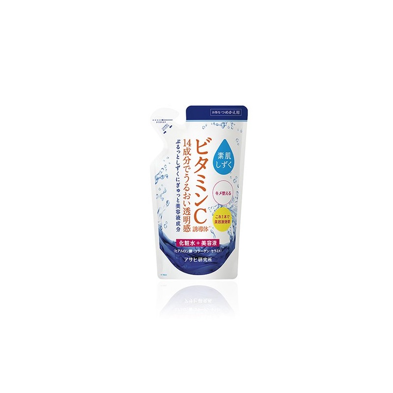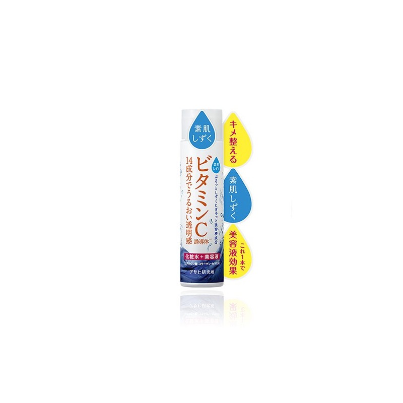 Vitamin C Lotion to nawadniający lotion z witaminą C o efektywności serum do codziennej pielęgnacji twarzy japońskiej firmy Asahi R&D Suhada Shizuku. Niezwykle bogata formuła produktu zawiera 2 formy witaminy C oraz 12 składników nawilżających w tym 3 rodzaje kwasu hialuronowego, 2 typy kolagenu, koenzym Q10 i ceramidy. Lotion nawilża i nawadnia oraz zabezpiecza skórę przed utratą wilgoci. Natychmiast wygładza skórę, poprawia jej jędrność i elastyczność. Hamuje procesy starzenia się skóry. Witamina C działa antyoksydacyjne, przeciwzapalnie i immunostymulująco. Uszczelnia naczynia krwionośne i zmniejsza zaczerwienienia. Zdecydowania poprawia koloryt skóry, rozjaśnia przebarwienia i rozświetla. Pojemność do wyboru: 200ml lub uzupełnienie 180ml.