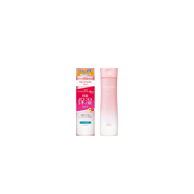 Moisture Mild Lotion b Moist to łagodny lotion głęboko nawilżający do twarzy japońskiej firmy Kose Cosmeport. Odpowiedni na dzień i na noc. Ten łagodny lotion silnie nawilża, zwiększa gęstość skóry i utrzymuje ją miękką i gładką. Chroni przed przesuszeniem, zapobiega łuszczeniu się skóry i powstawaniu zmarszczek. Ujędrnia i uelastycznia. Wypełnia luki w warstwie rogowej skóry i wzmacnia środowisko nawilżające. Kose Cosmeport Moisture Mild Lotion b Moist pozostawia jędrną, sprężystą i długotrwale nawilżoną skórę. Unikalna formuła zawiera osmotyczny kwas mikrohialuronowy AA (nawilżający), składnik zatrzymujący wodę (NMF/gliceryna) oraz silnie nawilżający kolagen liftingujący. Produkt nie zawiera środków zapachowych, barwników, alkoholu i olejów mineralnych. Pojemność do wyboru: 200ml lub uzupełnienie 180ml.
