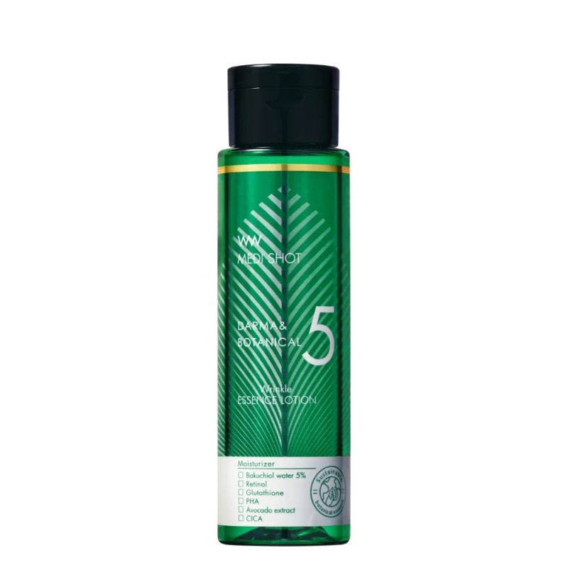 WW Medi Shot Derma & Botanical Wrinkle Essence Lotion to innowacyjna esencja-lotion przeciwzmarszczkowa z bakuchiolem i retinolem japońskiej firmy Meishoku. Meishoku Medi Shot Derma & Botanical Wrinkle Essence Lotion to zaawansowana formuła łącząca moc dermatologii i natury, stworzona z myślą o osobach pragnących jędrnej, gładkiej i pełnej blasku skóry. Dzięki unikalnemu połączeniu 5% bakuchiolu (botanicznej alternatywy dla retinolu) oraz kapsułkowanego czystego retinolu, lotion skutecznie wygładza drobne zmarszczki, poprawia elastyczność skóry i nadaje jej zdrowy, promienny wygląd.