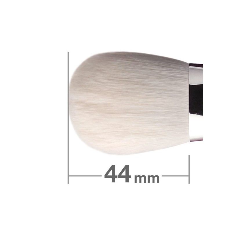 J501 Blush Brush Round & Flat to wysokiej jakości, nowej generacji pędzel do aplikacji różu japońskiej firmy Hakuhodo. Wykonany z włosia koziego i włókien syntetycznych. Rączka wykonana jest z lakierowanego na czarny kolor drewna, a skuwka z niklowanego mosiądzu. Rozmiar pędzla: długość: 159mm, długość włosów: 44mm, grubość włosów: 16.8mm.