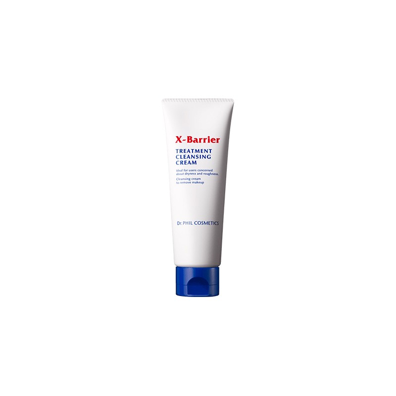 X-Barrier Treatment Cleansing Cream to oczyszczający krem do demakijażu twarzy o właściwościach wzmacniających naturalną barierę ochronną japońskiej firmy Kose Dr.PHIL COSMETICS. Ten innowacyjny kosmetyk oczyszczający delikatnie i skutecznie oczyszcza skórę z makijażu, sebum oraz zanieczyszczeń, jednocześnie chroniąc barierę naskórka. Usuwa brud, odblokowuje pory, nawilża, wzmacnia naturalną barierę ochronną i pomaga przywrócić zdrową kondycję skórze. Nie powoduje uczucia napięcia skóry i nie wysusza twarzy. Wyjątkowa formuła zawiera „Sakran TM” o doskonałej retencji wody (ma około 5-krotnie większą zdolność zatrzymywania wody niż kwas hialuronowy), który tworzy na skórze film i blokuje bodźce zewnętrzne! Zapobiega parowaniu wody i doskonale wspiera funkcję bariery! Dodatkowo odpowiednio dobrany olejek szybko zmywa makijaż i brud. Zmniejsza podrażnienia i obciążenie skóry. Kose Dr.PHIL COSMETICS X-Barrier Treatment Cleansing cream pozostawia skórę głęboko oczyszczoną, wyciszoną, nawilżoną i przyjemnie miękką w dotyku. Produkt nie zawiera parabenów, środków zapachowych, barwników, oleju mineralnego i alkoholu (etylowego). Pojemność 130g.