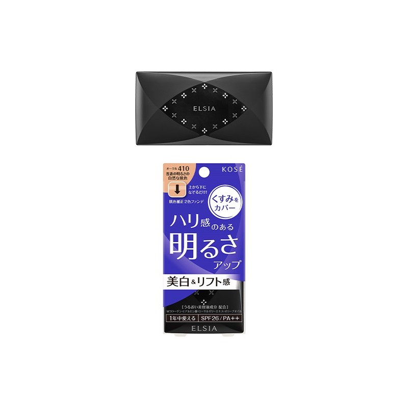 Bright Up Foundation SPF26 PA++ to lekki rozświetlający podkład z SPF26 PA++ japońskiej firmy Kose Elsia. Zapewnia efekt perfekcyjnej, idealnie gładkiej, promiennej cery. Rozjaśnia i wyrównuje koloryt, minimalizuje widoczność drobnych zmarszczek i porów. Niweluje matowość i ziemistość skóry. Neutralizuje nierówności kreując młodzieńczy blask. Absorbuje nadmiar sebum, nawilża i zapobiega przesuszeniu skóry. Sprawia, że cera jest jasna, rozświetlona, wygląda na wypoczętą i znacznie młodszą. Pielęgnacyjna formuła produktu zawiera kolagen, kwas hialuronowy, mleczko pszczele, oliwę z oliwek. Filtr SPF26 PA++ chroni przed szkodliwym promieniowaniem UV i jego skutkami przez cały dzień. Podkład dzięki formule nowej generacji jest niezwykle trwały. Dostępny w 4 odcieniach do wyboru. Może być stosowany na sucho lub mokro. Produkt bezzapachowy. Testowany antyalergicznie. Pojemność 10g.