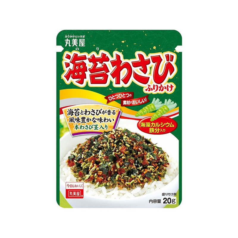 Furikake Seaweed Wasabi to przyprawa furikake z nori i wasabi firmy Marumiya. Marumiya Furikake Nori & Wasabi to tradycyjna japońska przyprawa w formie posypki („furikake”), która łączy w sobie intensywny smak wasabi z aromatycznymi wodorostami nori oraz innymi składnikami charakterystycznymi dla japońskiej kuchni. Ta przyprawa jest wytwarzana przez renomowaną japońską markę Marumiya, która od lat specjalizuje się w produkcji klasycznych dodatków do ryżu i innych potraw. Furikake jest jednym z najpopularniejszych japońskich produktów tego typu — stosuje się go przede wszystkim jako posypkę do gotowanego ryżu, ale jego zastosowania są dużo szersze.