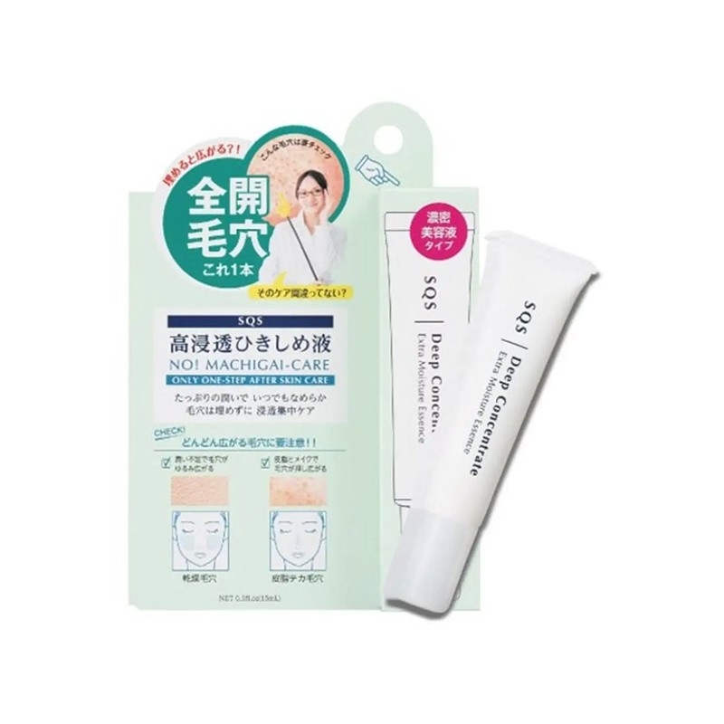 SQS Deep Concentrate Extra Moisture Essence to silnie nawilżające serum zwężające pory japońskiej firmy Ishizawa. To skoncentrowane serum intensywnie pielęgnuje otwarte pory na nosie i policzkach. Bogaty i gęsty płyn całkowicie wypełnia skórę i silnie napina ją. Trzy rodzaje kwasu hialuronowego nawilżają i rozluźniają pory, a kolagen zapewnia elastyczność niczym sprężyna, regenerując skórę. Składniki ściągają powierzchnię skóry z widocznymi porami i utrzymują ją gładką. Wyjątkowa formuła zawiera składniki zwężające pory i skórę, w tym ekstrakt z herbaty, ekstrakt z oczaru, 3 rodzaje kwasu hialuronowego, skoncentrowany kolagen, pochodną witaminy C i ekstrakt z luffy. Produkt nie zawiera barwników, substancji zapachowych, olejów mineralnych, parabenów. Pojemność: 15ml.