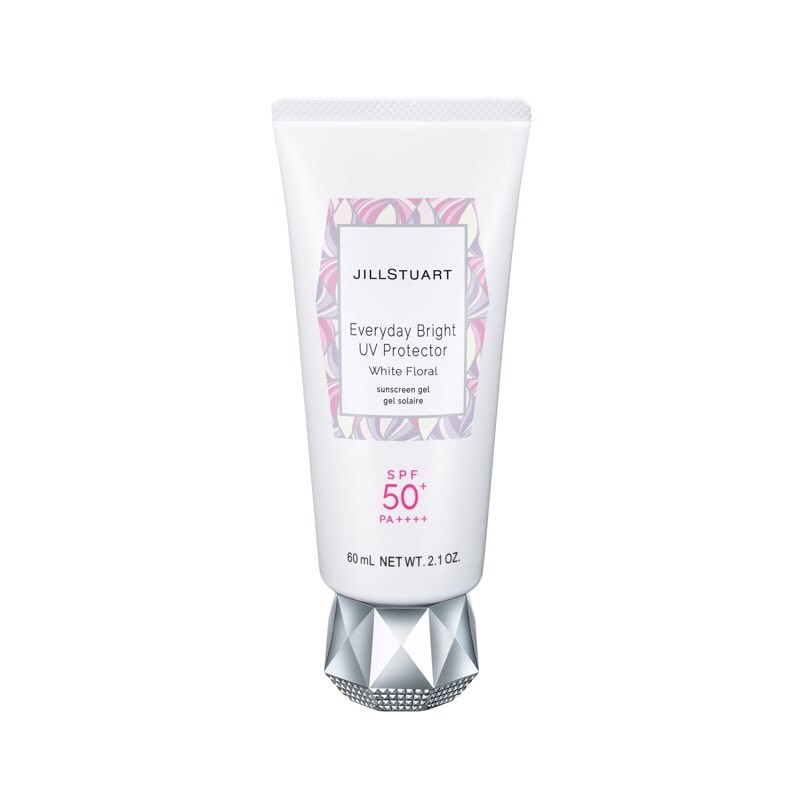 Everyday Bright UV Protector White Floral SPF50+ PA++++ to luksusowy, ultra lekki nawilżający żel przeciwsłoneczny do ochrony twarzy i ciała firmy JILL STUART. Lekki jak powietrze żel nawilża i długotrwale chroni skórę przed szkodliwym działaniem czynników środowiskowych; promieniowaniem ultrafioletowym UVA i UVB, zanieczyszczeniami atmosferycznymi, drobnym brudem i kurzem unoszącym się w atmosferze. Pudry absorbujące pot i sebum zapobiegają uczuciu lepkości i zapewniają świeżość oraz niezwykły komfort nawet w najbardziej upalne dni. Pielęgnująca formuła zawiera: miód różany, miód pomarańczowy, miód lawendowy, ekstrakt z owocu karambola, ekstrakt z kwiatów białej lilii, ekstrakt z piwonii, jedwab hydrolizowany, masło shea i ekstrakt z irysa. Składniki te zapewniają optymalny poziom nawilżenia i nawodnienia, doskonale odżywiają i chronią skórę przed przesuszeniem. Produkt ma piękny, świeży zapach białych kwiatów. Pojemność 60g.