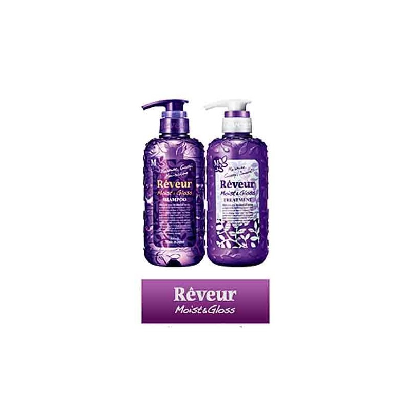 Reveur Shampoo Moist Gloss to wielokrotnie nagradzany (Japan Bea's Up magazine - Best Cosme No.1, Japan Biteki - Best Cosme Awards) zestaw szamponu i maski japońskiej firmy Reveur, przeznaczony do włosów suchych, łamliwych, wymagających silnego nawilżenia. Jego formuła oparta jest na naturalnych składnikach. Zawiera 3 naturalne oleje z nasion (ogórecznik lekarski, palmy Murumuru, jojoba) oraz 14 naturalnych ekstraktów roślinnych zapewniających głębokie nawilżenie. Szampon dodatkowo zawiera hydrolizowane białko grochu do odbudowy i regeneracji. Maska z tej serii dodatkowo zawiera kolagen. Po zastosowaniu włosy są odżywione, miękkie, gładkie, lśniące, jedwabiste, pełne blasku. Pojemność: dwie butelki w zestawie po 500ml każda.