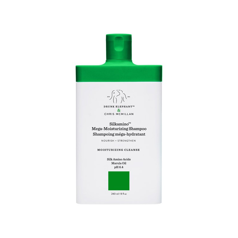 Silkamino M Moisturizing Shampoo to bezsilikonowy głęboko nawilżający szampon pielęgnujący skórę głowy amerykańskiej firmy Drunk Elephant & Chris McMillan. Do włosów suchych, przesuszonych, zniszczonych koloryzacją, trwałą lub innymi zabiegami fryzjerskimi. Ten bezsilikonowy szampon delikatnie i dokładnie oczyszcza i pielęgnuje włosy oraz skórę głowy. Nawilża suche włosy, czyniąc je gładszymi, bardziej miękkimi i łatwiejszymi w układaniu. Redukuje suchość włosów, naprawia uszkodzenia i wzmacnia je. Sprawia, że nawet najbardziej suche i zniszczone włosy są gładkie, miękkie i podatne na stylizację, a skóra głowy ukojona i zrównoważona. Wzbogaca włosy w aminokwasy i proteiny jedwabiu, aby odbudować wiązania, wzmocnić i wygładzić trzon włosa. Zawiera mieszankę jedwabiu aminokwas GL i białko GL oraz olej marula. Produkt nie zawiera środków powierzchniowo czynnych (SLS), silikonu, olejków eterycznych, zapachu, barwników, alkoholu (etanolu). Pojemność: 235g.